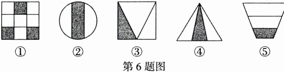 6. (2024 陕西 JDFZ)如下图中,阴影部分的面积是整个图形面积的$\frac {1}{3}$的是
