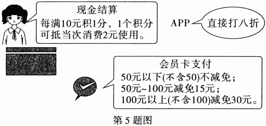 5. (2021 陕西 GX3C)佳乐超市庆祝"五·一"开展促销活动,三种支付方式(如图)。