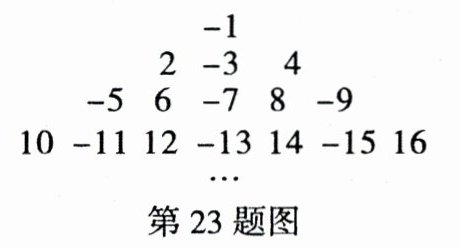 23. (2024陕西TYZ元培)我们知道,$1+3= 4,1+3+5= 9,1+3+5+7= 16,...$,观察下面的一列数,-1,2,-3,4,-5,6,…,将这些数排成如图所示形式,根据规律猜想:第30行第4个数是______。