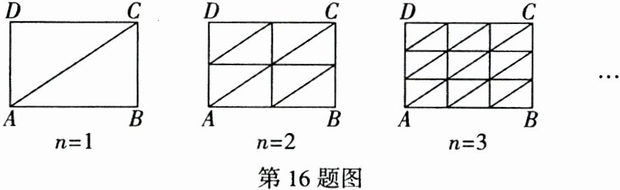 当n= 2时,长方形ABCD分为8个直角三角形,总计数出16条边。
