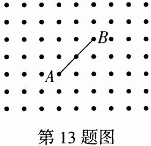 13. (2024 陕西 JDFZ)在所给的9×7的点子图中,横排和竖排每相邻两点间的长度均为1,以这些点为顶点的三角形称为网格三角形,请找出点M,使以A、B、M为顶点的网格三角形是直角三角形,且面积为4,这样的点M有个。