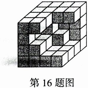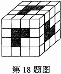 18. (2021 陕西 CDFZ)如图是由若干个小正方体组成的。阴影部分是空缺的通道,一直通到对面。问:这个立体图形由多少个小正方体组成?