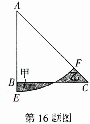 16. (2022 陕西 GXYZ 创新班)如图,等腰直角三角形$ABC$的腰长为 10 厘米,阴影部分甲与乙面积相等,扇形$EAF$所在圆的面积是