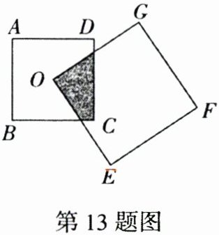 13. (2024 陕西 GDFZ)如图,正方形$ABCD的中心为O$,其边长为 8,则正方形$OEFG与正方形ABCD$重叠部分的面积为( )。
