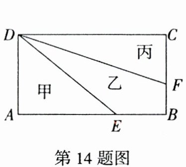 14. (2024 陕西 XYXPD 学校)如图,长方形被分成甲、乙、丙面积相等的三部分,已知$AB= 12$厘米,则$BE= $