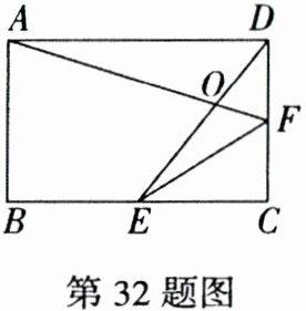 32. (2024陕西GXYZ博雅班)如图,长方形 ABCD 的面积为1,E、F 分别为 BC、CD 的中点,DE、AF 交于点 O,求三角形 OEF 的面积。
