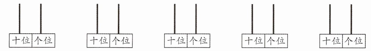 能拨$5$个,分别是$50$(十位画$5$颗珠子)、$41$(十位画$4$颗珠子,个位画$1$颗珠子)、$32$(十位画$3$颗珠子,个位画$2$颗珠子)、$23$(十位画$2$颗珠子,个位画$3$颗珠子)、$14$(十位画$1$颗珠子,个位画$4$颗珠子)。