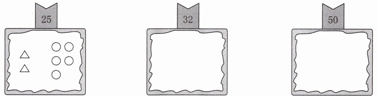 $32$:左边画$3$个$\triangle$,右边画$2$个$○$。