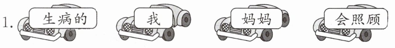 三、我能把下列字词组成一句通顺的话,并加上标点。