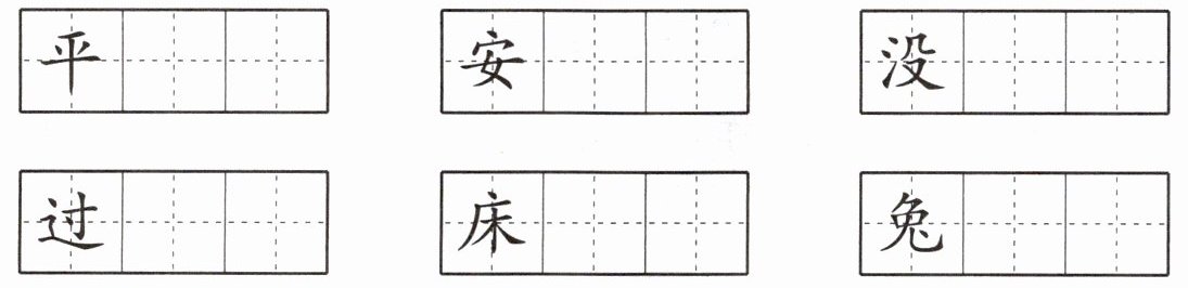 平、安、没、过、床、兔 (按照正确的笔画顺序和书写规范认真书写每个字)。