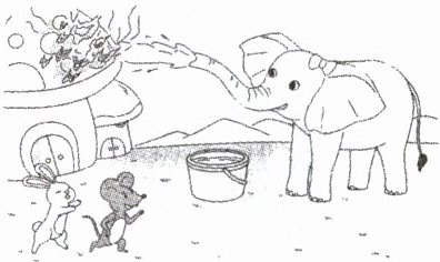 小兔子发现蘑菇房着火后,焦急地大喊:“不好啦,我的房子着火啦!”小老鼠也着急地说:“这可怎么办呀!”这时大象不慌不忙地说:“别着急,看我的!”只见大象用长长的鼻子吸满了桶里的水,然后对着着火的蘑菇房喷去。小兔子和小老鼠在一旁为大象加油。经过大象的努力,火终于被扑灭了。小兔子感激地对大象说:“太谢谢你啦,大象哥哥!”大象笑着说:“不客气,朋友之间就应该互相帮助!”