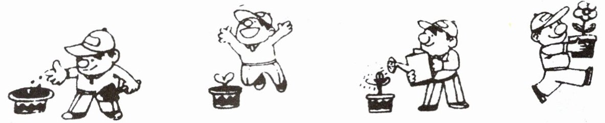 小明把花种子种在了花盆里,之后每天精心照料。不久种子发芽,小明欣喜若狂。接着他持续用心呵护,小芽茁壮成长。最终花开,小明捧着花,满心欢喜。