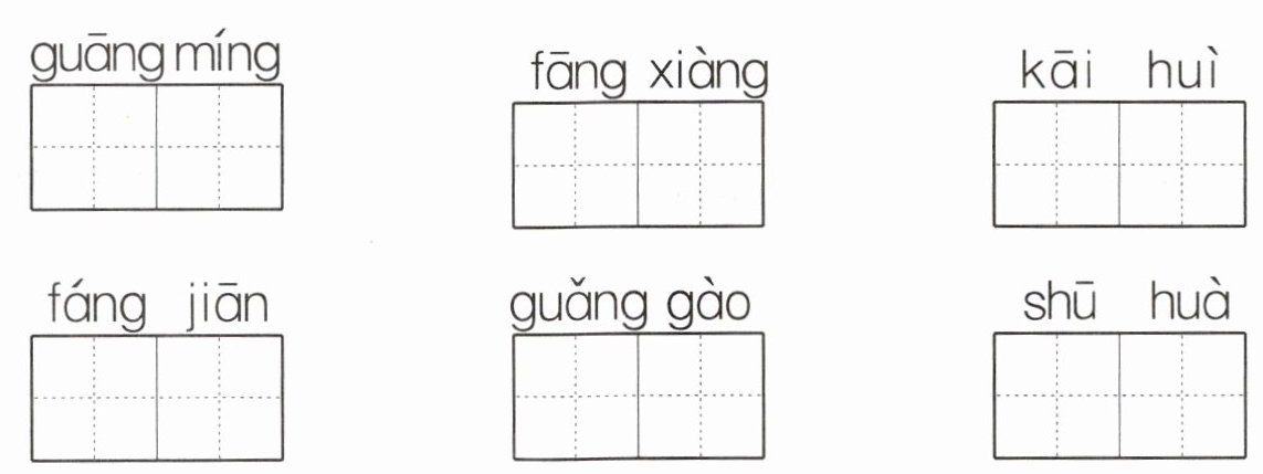 光明、方向、开会、房间、广告、书画。