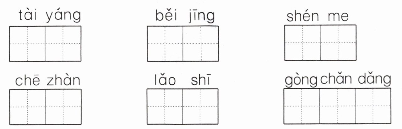 太阳、北京、什么、车站、老师、共产党。