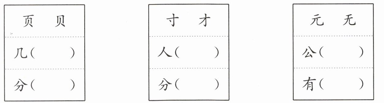 几(页)、分(贝);人(才)、分(寸);公(元)、有(无)。