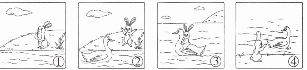 一天,小兔子想去河对岸找朋友玩。可是河水很深,它过不去,急得团团转。这时,小鸭子游了过来。小兔子连忙说:“小鸭子,你能驮我过河吗?”小鸭子说:“当然可以,你上来吧。”小兔子小心地坐在小鸭子背上,小鸭子奋力向对岸游去。到了对岸,小兔子跳下来,感激地说:“谢谢你,小鸭子!”小鸭子笑着说:“不客气,再见!”然后,小鸭子转身游走了。