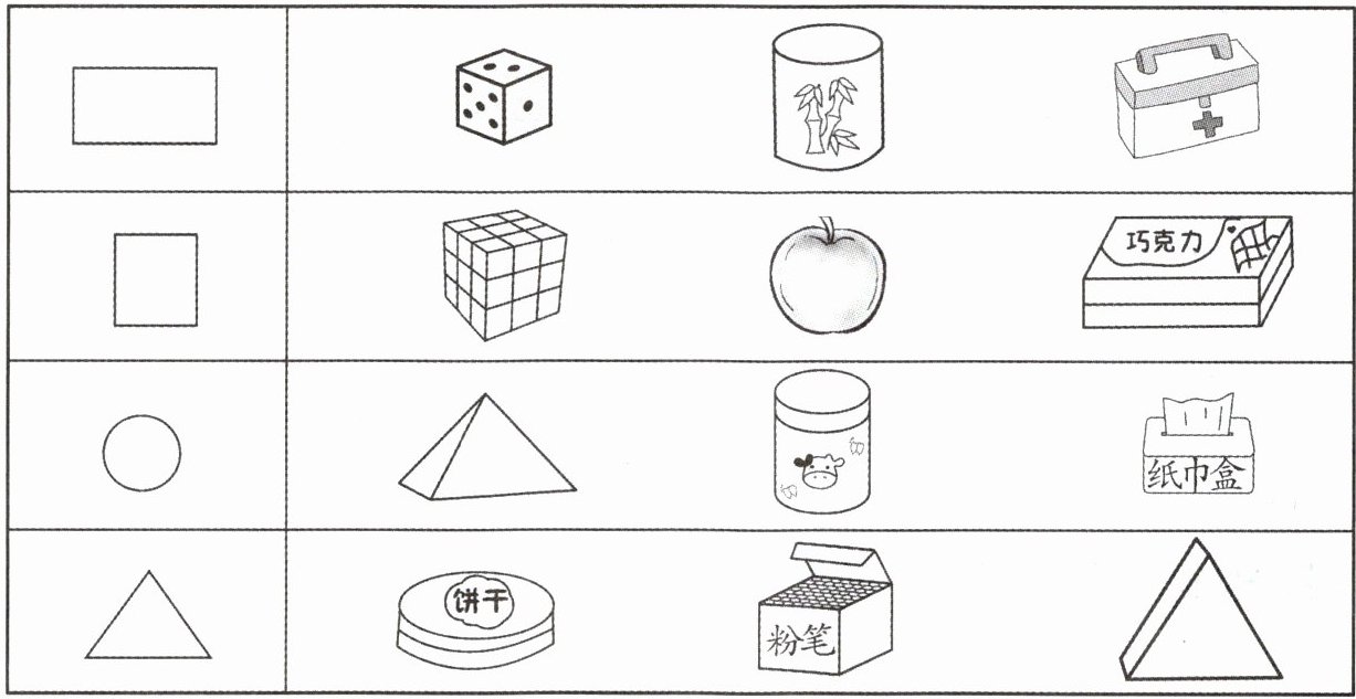 四、用右边哪个物体可以画出左边的图形?请把它圈出来。