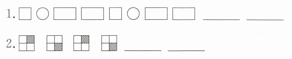 2. $\bigcirc比\square$多()个,○比▱少()个。