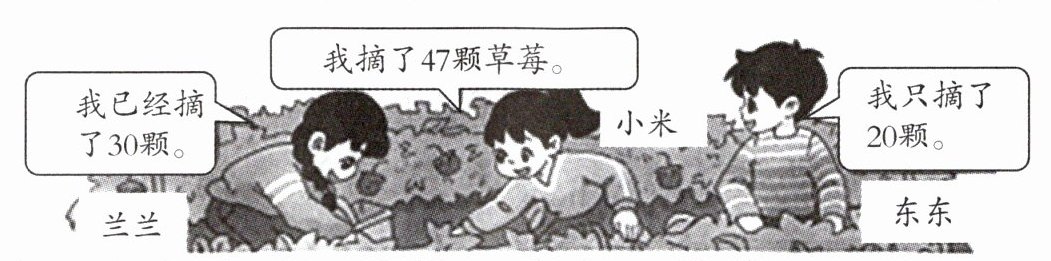 2. 小米口渴去喝水了,东东至少再摘多少颗草莓才能超过小米?