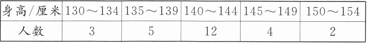 (4)这个班男生身高在145~149厘米范围内的有()人。