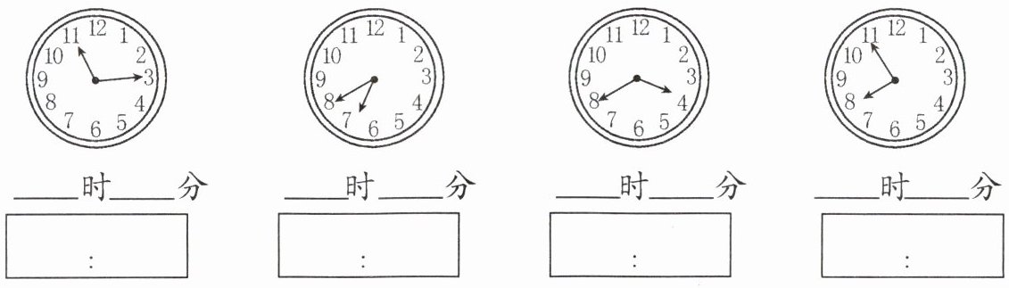 12时15分,$12:15$;6时40分,$6:40$;3时40分,$3:40$;7时55分,$7:55$。
