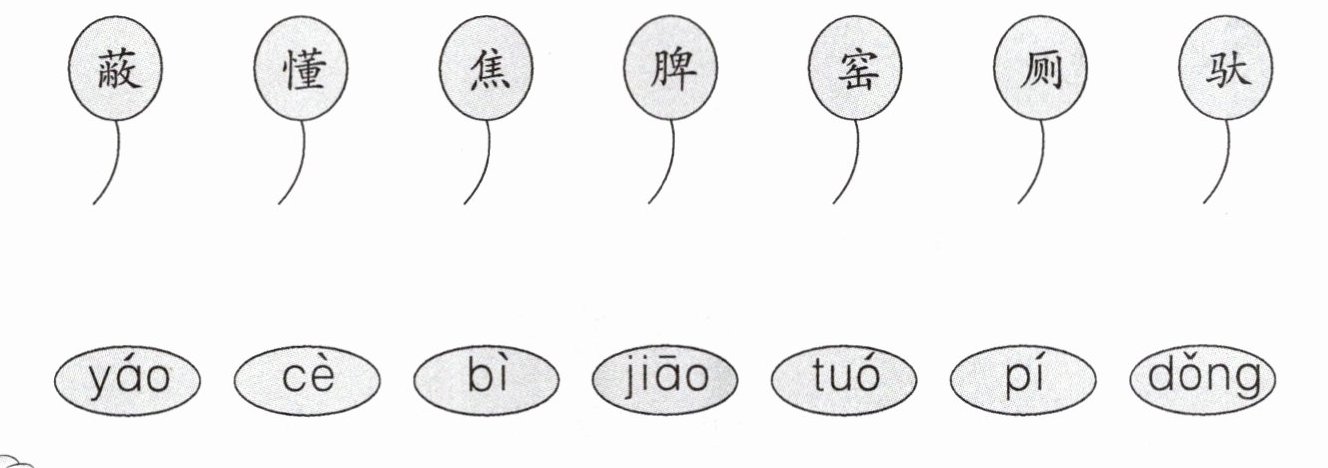蔽—bì;懂—dǒng;焦—jiāo;脾—pí;窑—yáo;厕—cè;驮—tuó。