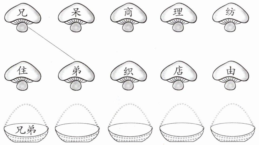 呆—由(组成呆由);商—店(商店);理—由(理由);纺—织(纺织)。
