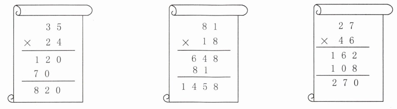 - $35\times24$计算**错误**,改正: