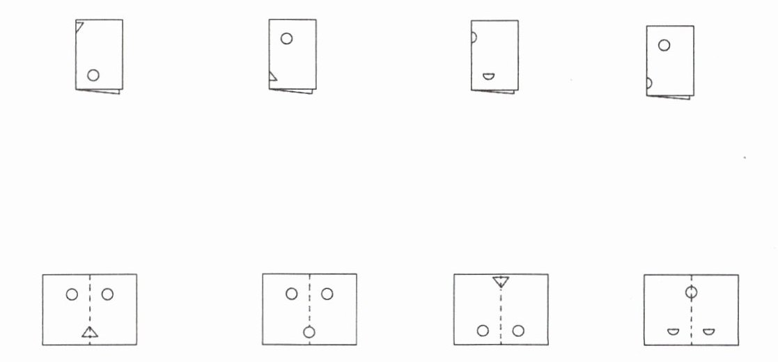 第一个对折纸连第二排左数第一个图;第二个对折纸连第二排左数第二个图;第三个对折纸连第二排左数第四个图;第四个对折纸连第二排左数第三个图。