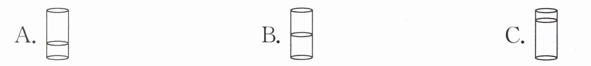 5. 下面的每个杯子最多盛果汁600克,()杯子里的果汁约为200克。