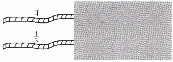 3. 用一块布盖住了两根绳子的一部分,露出部分的长度相等,第一根绳子露出部分的长度占第一根绳子长度的$\frac {1}{4}$,第二根绳子露出部分的长度占第二根绳子长度的$\frac {1}{3}$。你知道哪根绳子长吗?为什么?