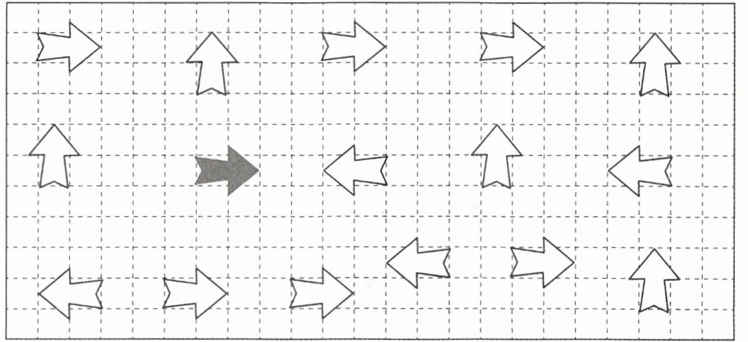 将第一行从左往右数第1个、第3个、第4个白色箭头;第三行从左往右数第2个、第3个、第6个白色箭头涂上颜色。