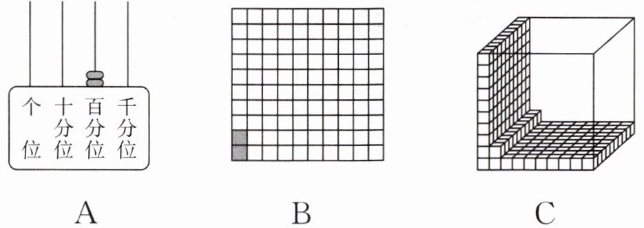 2. 十分位上的$5表示的数比百分位上的5$表示的数多()。