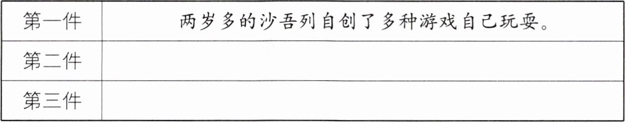 1. 第二件:沙吾列独自走很长的路到“我们”家。 第三件:沙吾列吃好吃的留着给父母。