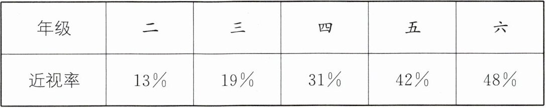 观察我们的身边,你会发现不少小学生都戴上了眼镜。请根据“希望小学二至六年级学生视力调查”主题活动中搜集到的相关数据,回答问题。