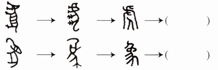解析:第一组图,从最初类似胃的形状的古文字,经过演变,最后对应的现代汉字是“胃”;第二组图,从表示房屋里有猪(豕)的古文字演变,最后对应的现代汉字是“家”(在古代,猪是家庭财富的象征之一,房屋里有猪表示家)。
