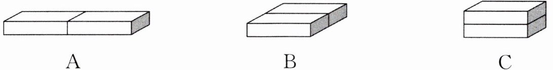 3. 把两块相同的长方体木块拼在一起,下面的三种拼法中,()拼法拼出的表面积最大。
