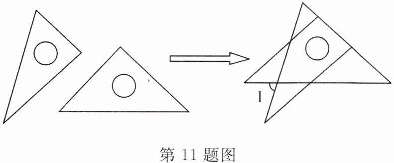 11. 将一副直角三角板如图放置,使含$30^{\circ }角的三角板的短直角边和含45^{\circ }$角的三角板的一条直角边重合,则$∠1$的度数为______.