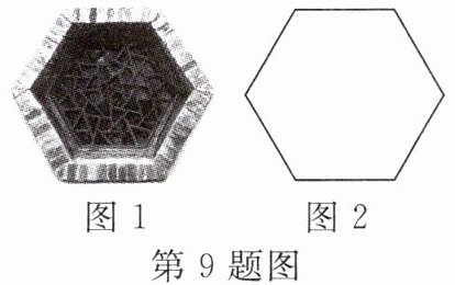 9. 如图1所示的窗棂的外框为正六边形(图2为其结构示意图),则该正六边形的每个内角为()