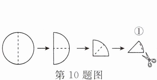 10. 如图,将一个半径为1的圆形纸片连续对折三次之后,用剪刀沿虚线①剪开,则展开后得到的多边形的内角和为()