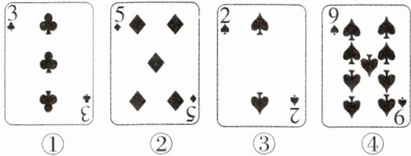 2.如图,魔术师把4张扑克牌放在桌子上,然后蒙住眼睛,请一位观众上台,把其中2张扑克牌旋转180°.魔术师解除蒙具后,看到4张扑克牌的图形不变.被旋转过的扑克牌是()