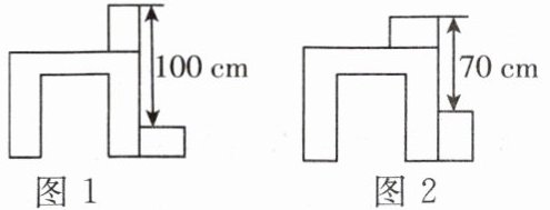 17. 利用两块完全一样的长方体木块测量一张桌子的高度。首先按图 1 的方式放置,再按图 2 的方式放置。则根据其平面示意图测量的数据(如图),可得桌子的高度为______cm。