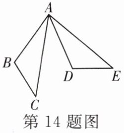 14. 如图,将$\triangle ABC绕点A按逆时针方向旋转60^{\circ}后得到\triangle ADE$,若$∠BAC = 25^{\circ}$,则$∠CAD = $______.