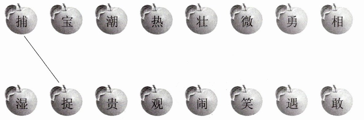捕—捉、宝—贵、潮—湿、热—闹、壮—观、微—笑、勇—敢、相—遇。