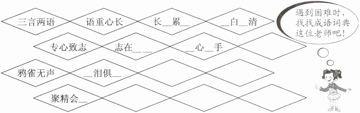 三言两语 语重心长 长(年)累(月) 月(白)风(清)