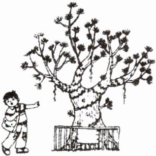 公园里的一个小护栏内有一棵松树,树干粗壮,枝条冲天,古老而富有生机。在它身上紧紧地缠绕着一根藤,看上去非常亲密。护栏上挂着一块还没有写字的木牌,请你在上面写一句环保标语。