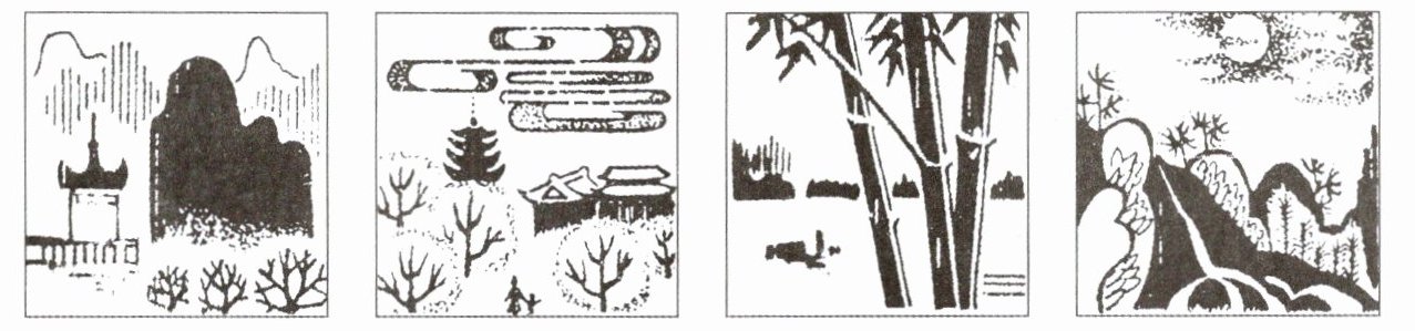 这四幅风景画中都藏着一个字。你能找出来吗?