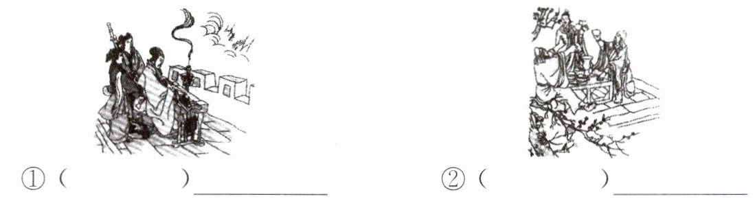 上面两幅画描绘的都是《三国演义》中的故事,请你在括号里写出每个故事的名字,并在横线上写出代表人物。
