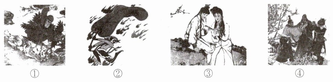 1. 上面四幅图代表的故事分别出自中国古典名著《 》《 》《 》《 》。图①讲述的故事是《 》。