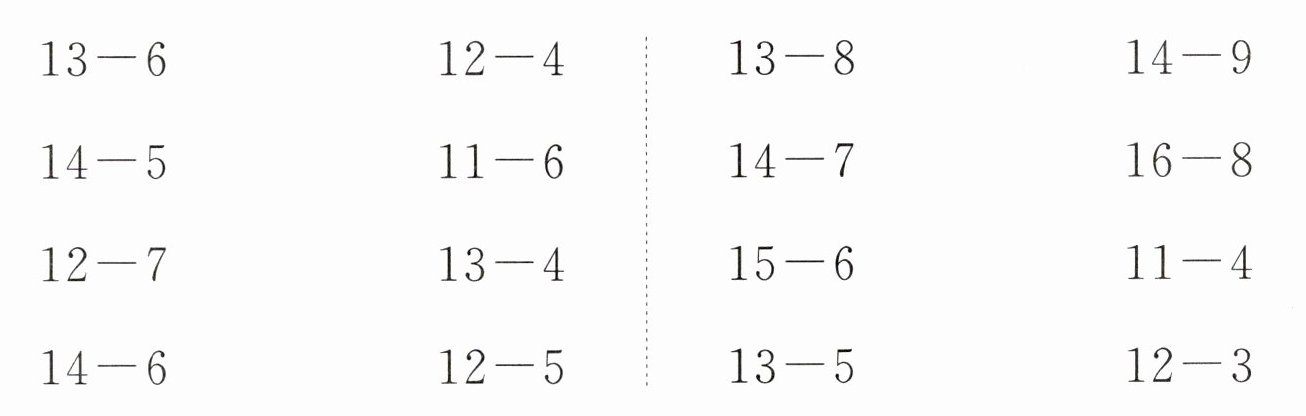 $13 - 9 = 4$;$15 - 8 = 7$;$13 - 7 = 6$;$15 - 5 = 10$;$18 - 9 = 9$;$14 - 5 = 9$;$16 - 7 = 9$;$13 - 5 = 8$。